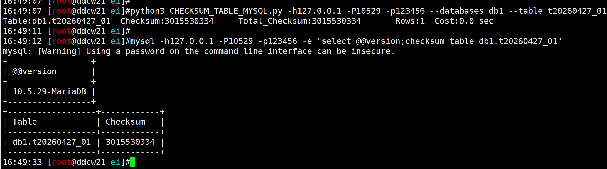 python3 CHECKSUM_TABLE_MYSQL.py -h127.0.0.1 -P10529 -p123456 --databases db1 --table t20260427_01