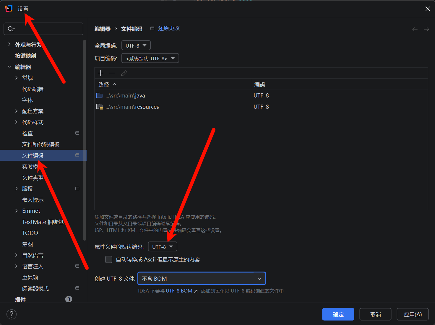 另外 Windows 下 .properties 文件中文注释会乱码,可以在 IDEA 设置里修改:Settings → Editor → File Encodings → Properties Files 改成 UTF-8,勾选 Transparent native-to-ascii conversion。