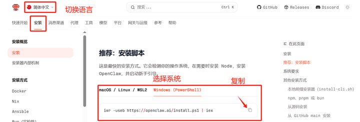 官方文档参考:docs.openclaw.ai/zh-CN/install