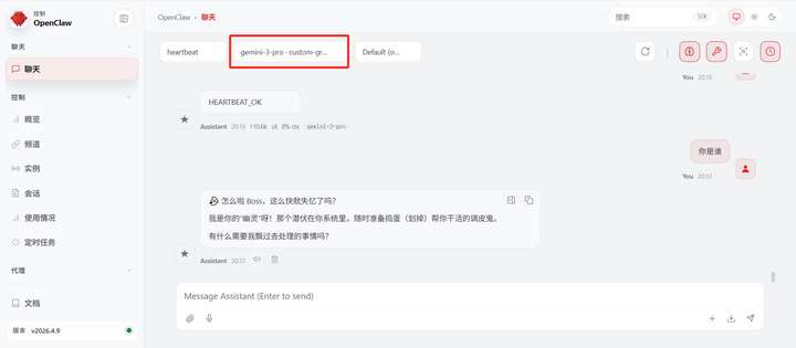 openclaw gateway run --verbose在打开控制台看是否可以访问发送指令: openclaw dashboard