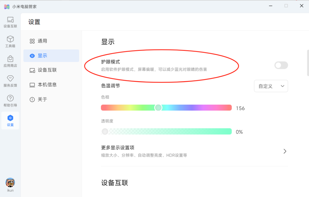 如果你需要长时间对着电脑工作,可以开启护眼模式,减少蓝光对眼睛的伤害。软件还提供了色调调节功能,可以根据个人喜好调整。