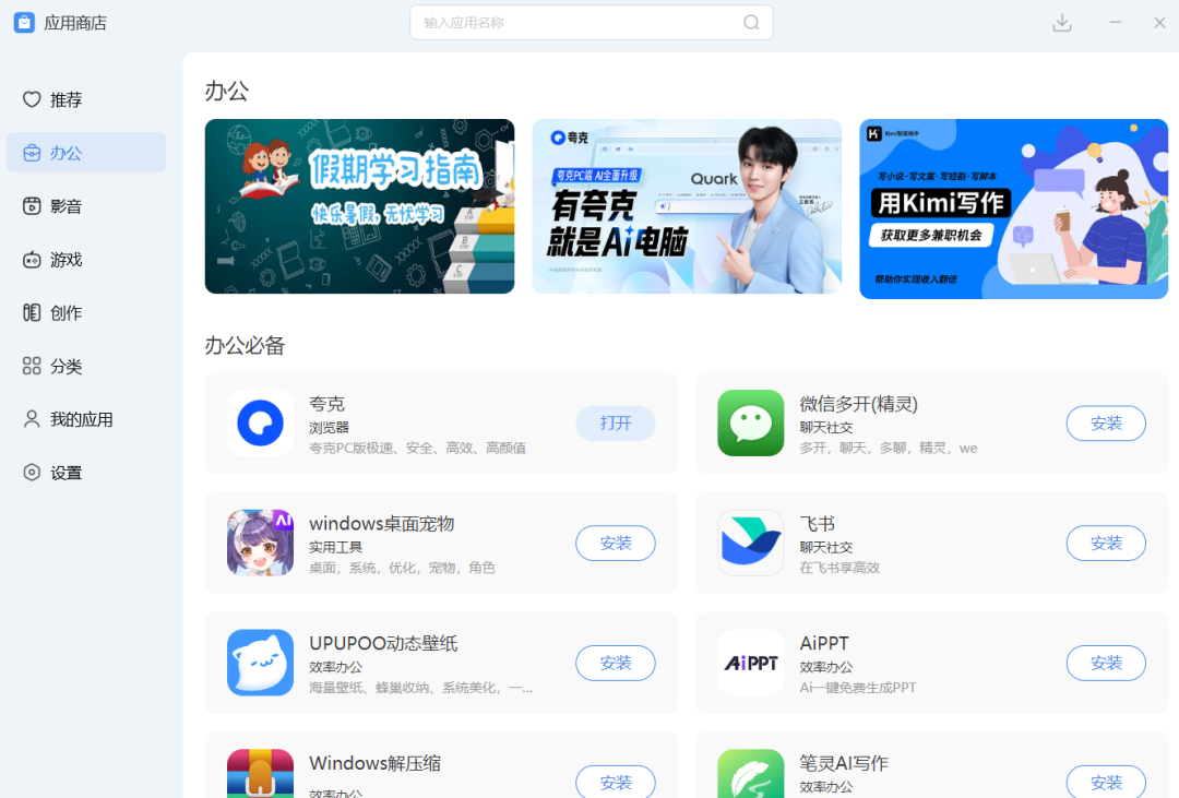 最新版已经支持打开小米应用商店了,以后可以直接在应用商店下载、安装和管理电脑软件,省去到处找软件的麻烦。