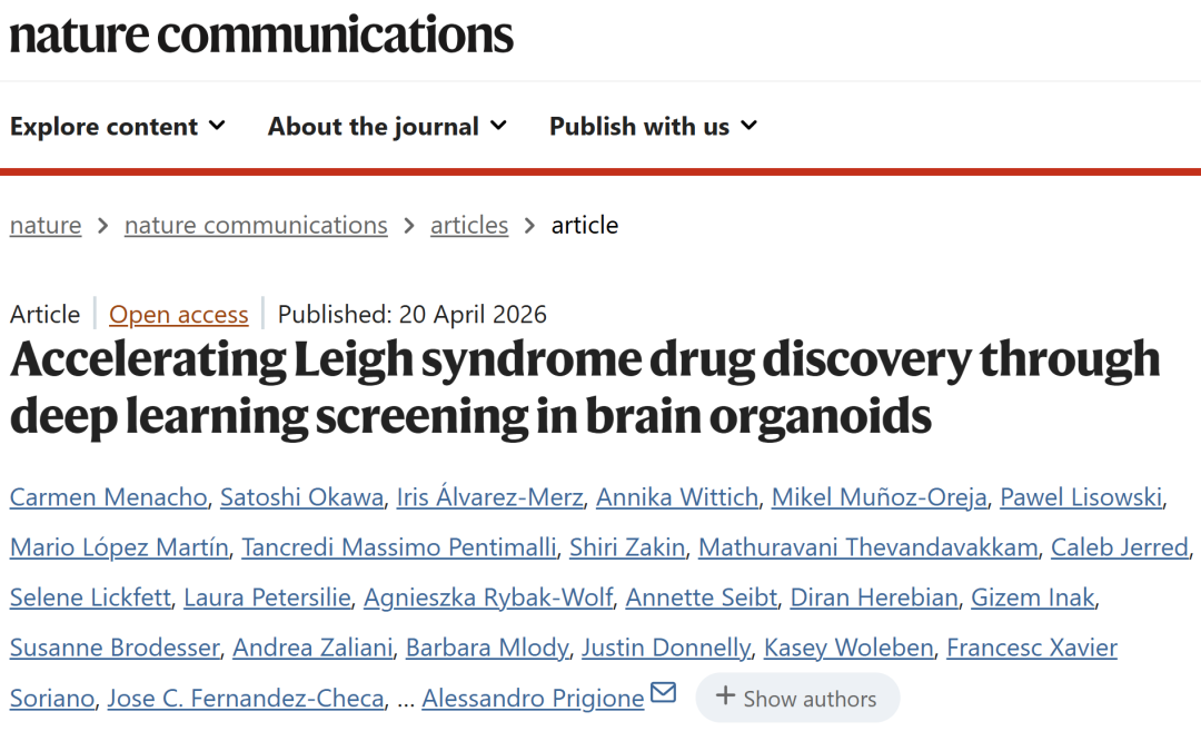 Menacho, C., Okawa, S., Álvarez-Merz, I. et al. Accelerating Leigh syndrome drug discovery through deep learning screening in brain organoids. Nat Commun 17, 3570 (2026).
