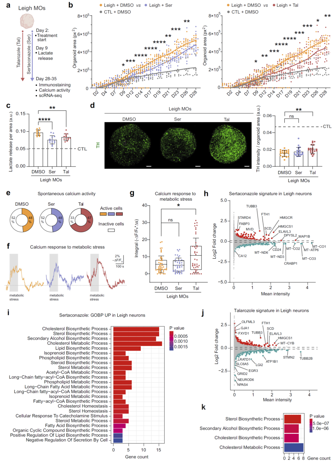 基于这一疾病表型,研究人员开发了一种针对特定细胞类型的深度学习药物重定位筛选方法,并结合酵母模型开展生存筛选实验。两种独立策略最终均指向唑类化合物,其中他拉罗唑(talarozole)和舍他康唑(sertaconazole)能够恢复Leigh神经元的形态发生,同时降低乳酸释放并改善中脑类器官的生长状态。机制研究表明,这些化合物通过调控维甲酸信号通路以及膜相关脂质代谢发挥作用。整体来看,该研究展示了将计算筛选与人源脑类器官结合的潜力,为罕见神经发育疾病的药物发现提供了一种新方法。