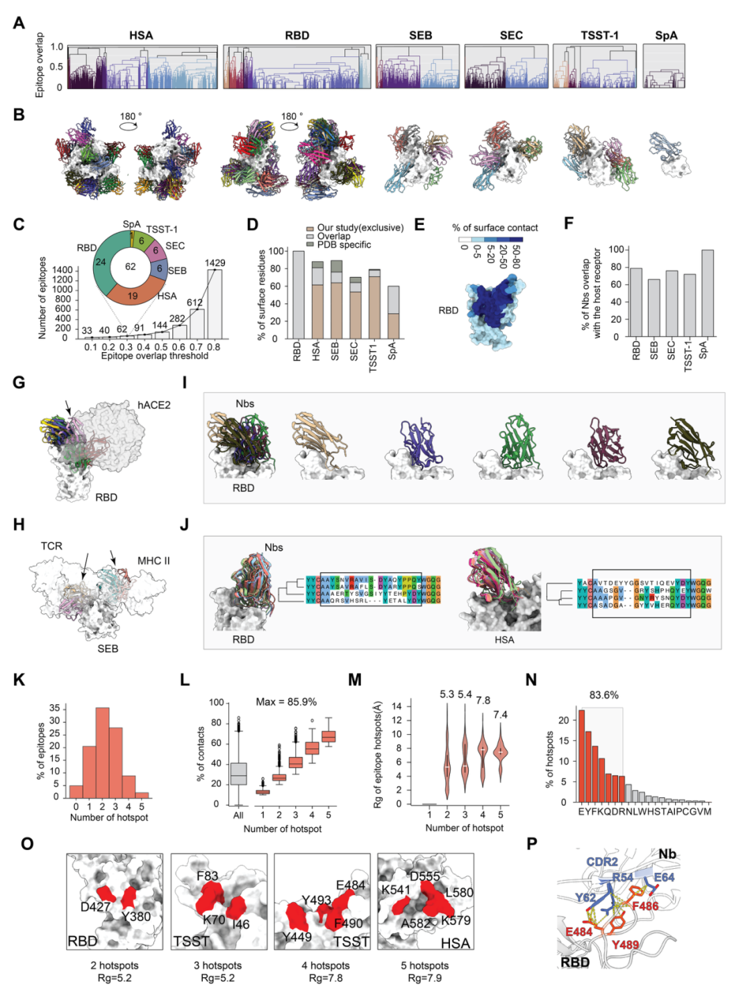 图3:六种抗原的表位多样性分析与热点架构图。