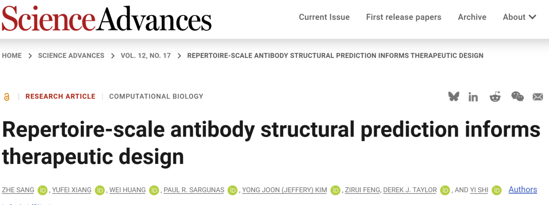 Zhe Sang et al. ,Repertoire-scale antibody structural prediction informs therapeutic design.Sci. Adv.12,eaef7163(2026).