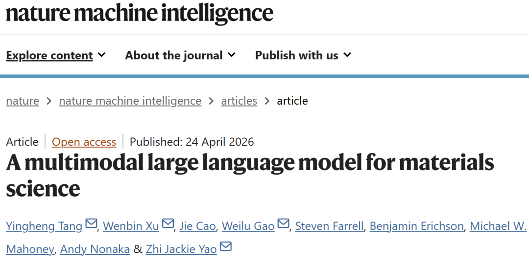 Tang, Y., Xu, W., Cao, J. et al. A multimodal large language model for materials science. Nat Mach Intell 8, 588–601 (2026).