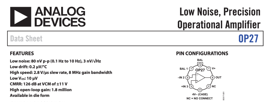 这就是为什么常用的低噪声精密运放,很多都落在:0.8 nV/√Hz,1.0 nV/√Hz,1.2 nV/√Hz,2 nV/√Hz这个档位。
