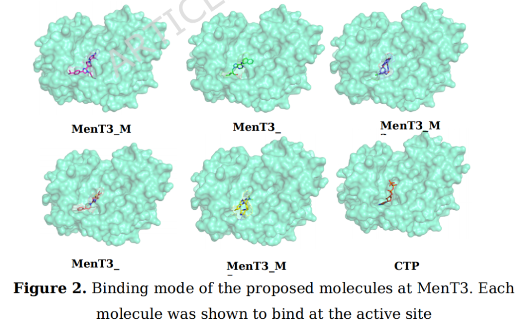 这种互补的电荷分布模式与CTP在MenT3活性位点中的作用方式高度一致,支持其作为有效竞争性抑制剂的合理性。