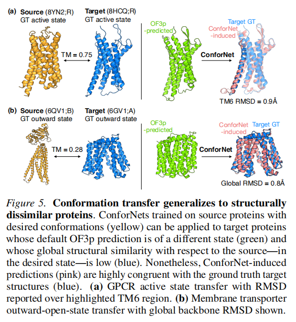 这是本文提出的全新任务:给定蛋白质家族中一个"源蛋白质"的特定功能态参考结构,训练一个 ConforNet,然后将其迁移到同家族所有其他蛋白质,以高概率诱导出相同功能态。