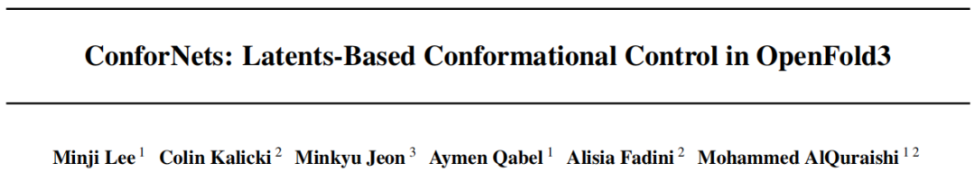 论文信息:ConforNets: Latents-Based Conformational Control in OpenFold3 作者:Minji Lee, Colin Kalicki, Minkyu Jeon, Aymen Qabel, Alisia Fadini, Mohammed AlQuraishi 机构:Columbia University(计算机系 & 系统生物学系)、Princeton University 状态:预印本,arXiv:2604.18559,2026 年 4 月 21 日