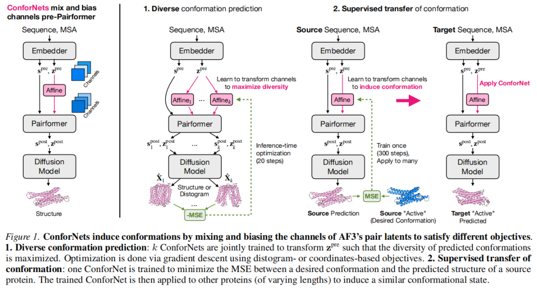 ConforNets 基于 OpenFold3-preview(OF3p),一个 AlphaFold3 的开源复现版本。ConforNets 作为 OF3p 推理流程的轻量插件实现,可直接集成到现有 OF3p 工作流中。