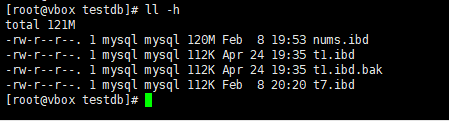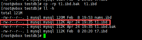 同时,备份当前完整的.ibd文件(防止操作失误导致文件损坏,无法回滚):