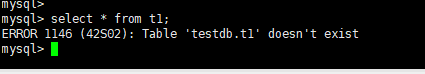 ERROR 1146 (42S02): Table `testdb`.`t1` doesn't exist