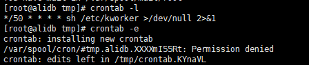 最初尝试常规权限修复、定时任务清理,全部被黑客限制拦截,关键操作报错如下: