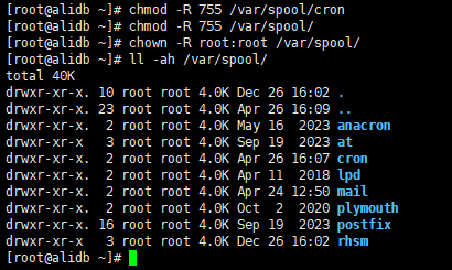 chmod: changing permissions of ‘spool/cron’: Operation not permitted