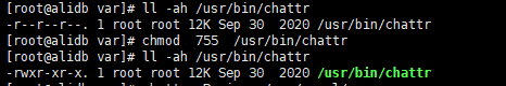 黑客恶意将chattr设置为只读权限,阻断解锁操作,首先恢复命令执行权限: