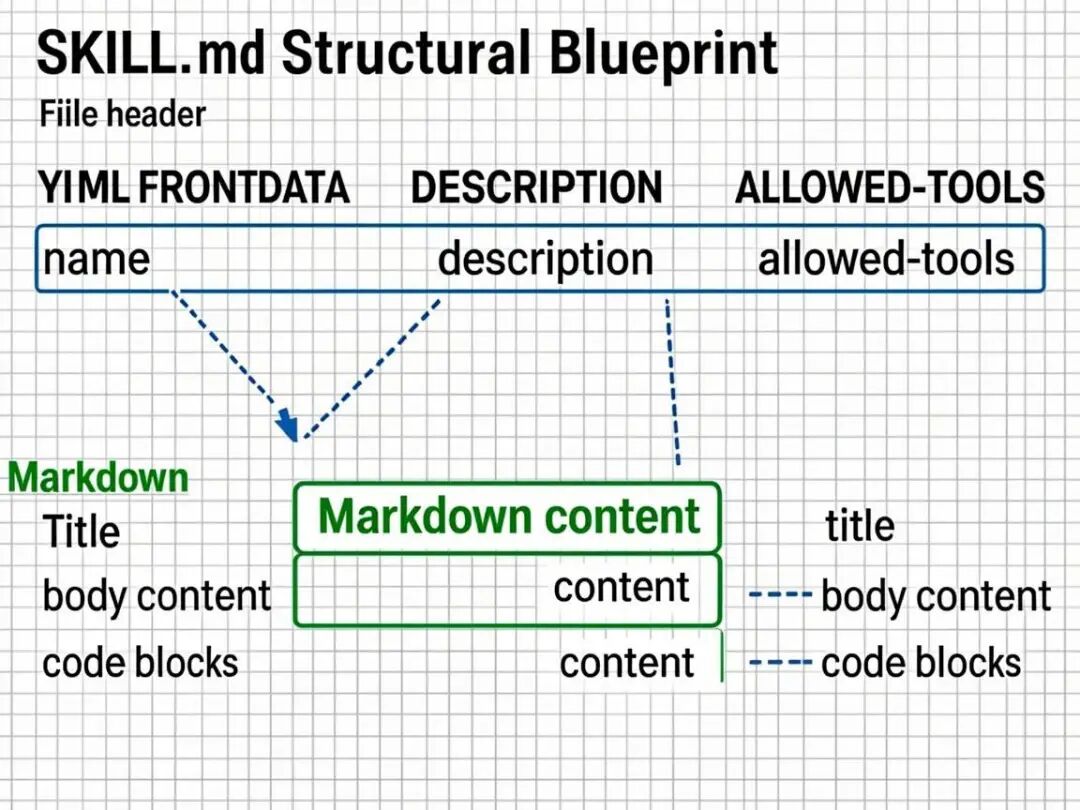 SKILL.md 是一个带 YAML 头信息的 Markdown 文件,由两部分组成: