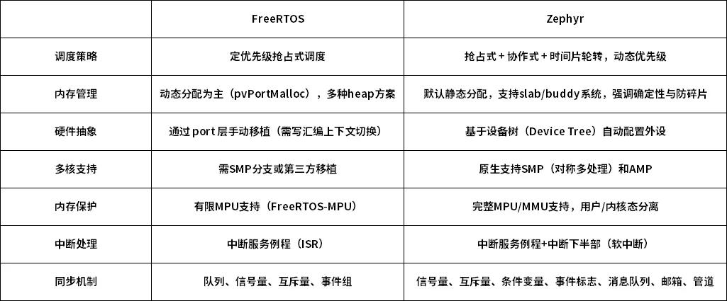 Zephyr和FreeRTOS都属于实时操作系统,且都面向物联网场景深化布局,但二者在软件架构、内核设计上有明显差异。