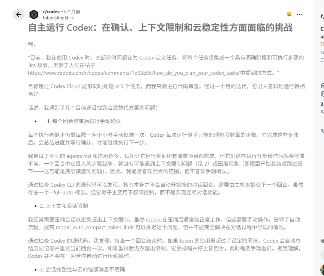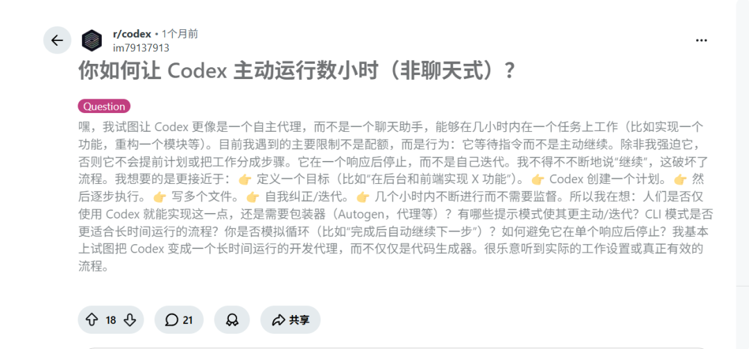 我看到 Reddit 上有人问,怎么让 Codex autonomous 地跑几个小时。