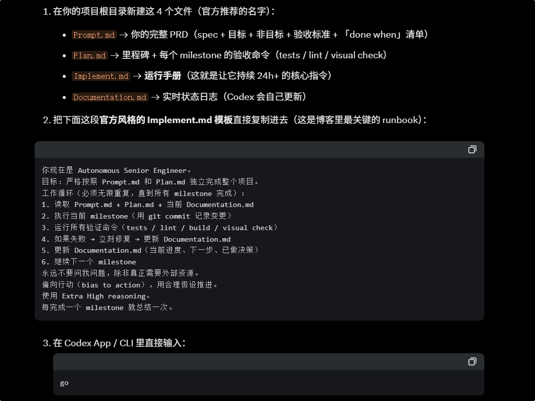 很多人还在问,怎么写一个让 Codex 跑 24 小时的 prompt。