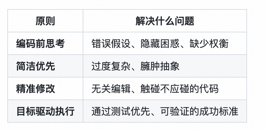 CLAUDE.md 文件正是为了解决上述问题,提出了四条清晰、可执行的指令: