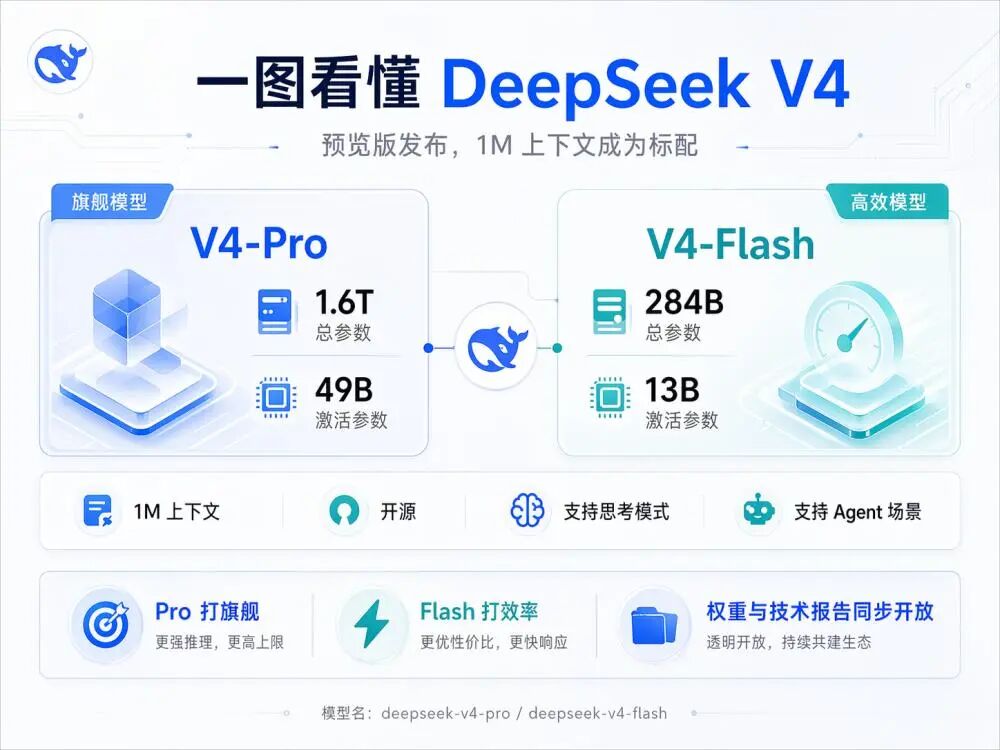 2026年4月24日,DeepSeek发布V4预览版,两个版本: