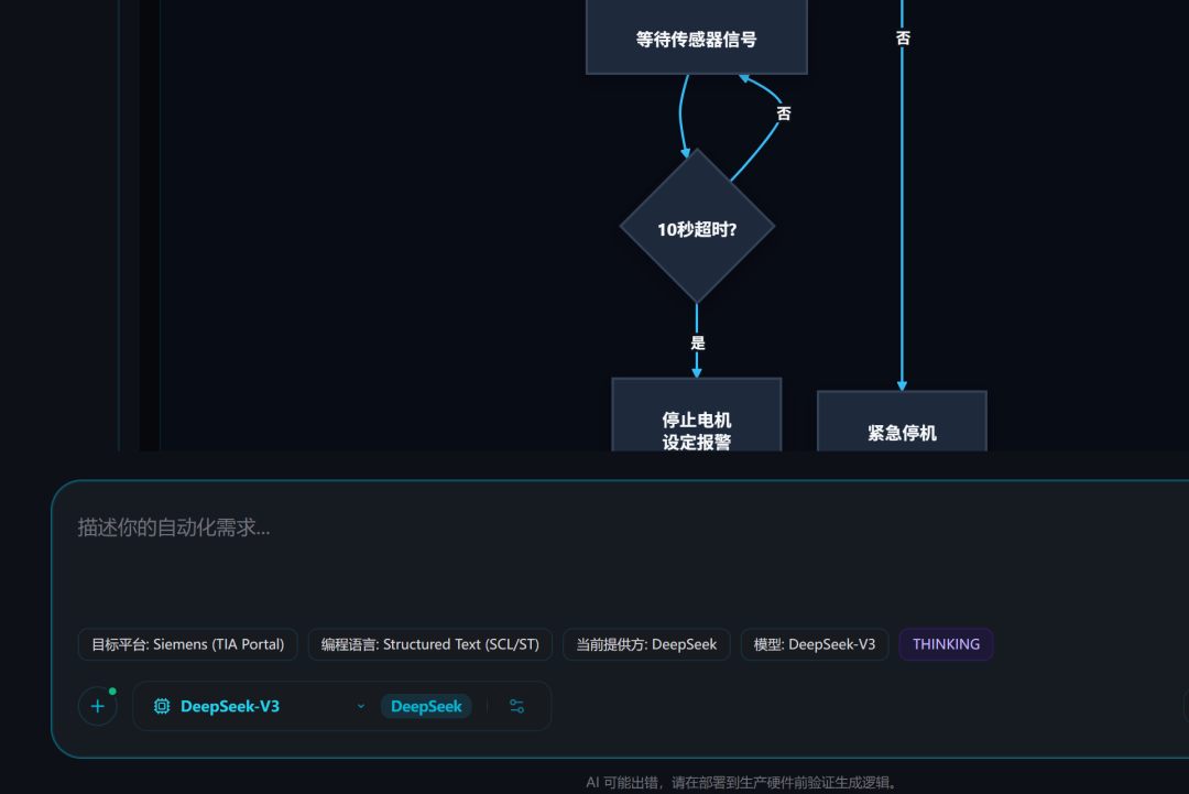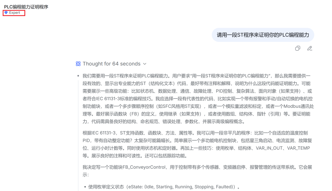 最简单的一个需求,让AI自己去证明自己的PLC编程能力,所以我们这样进行测试: