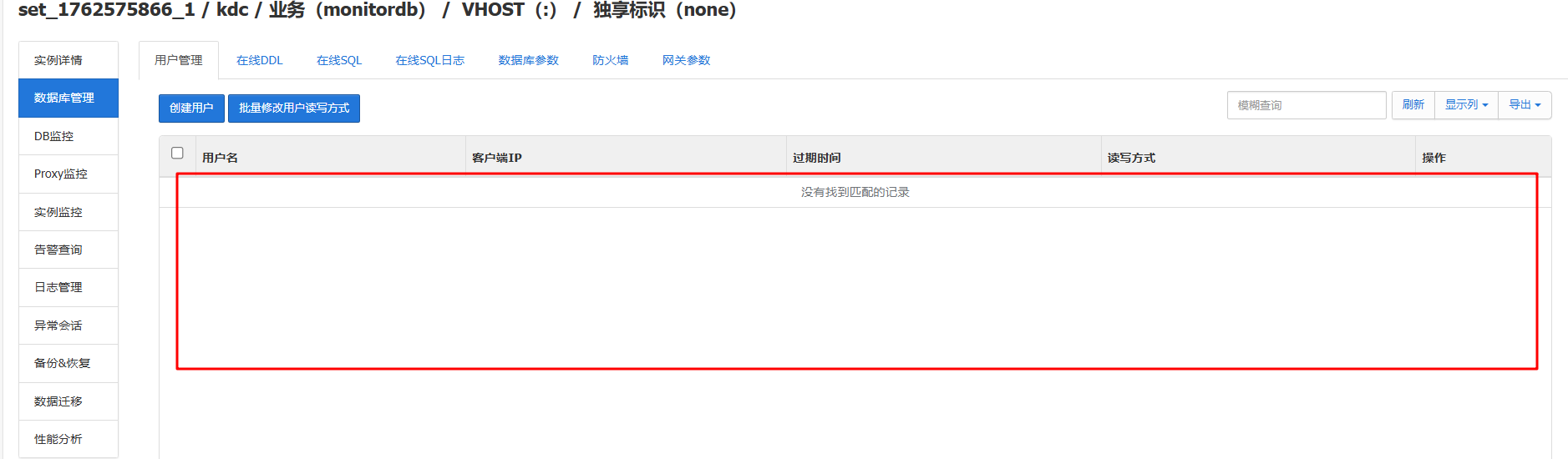 赤兔登陆后跳转数据管理看不到之前创建用户和数据库