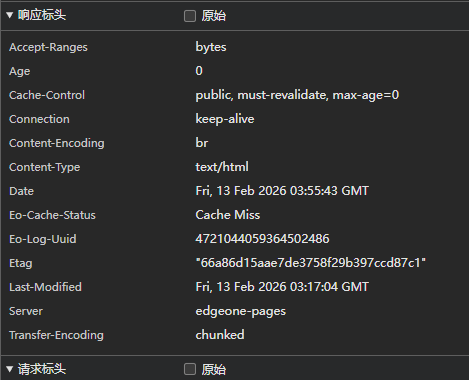 我把 edgeone.json 放到了项目根目录,且添加了 Headers,但是实际响应没有我添加的 Header。