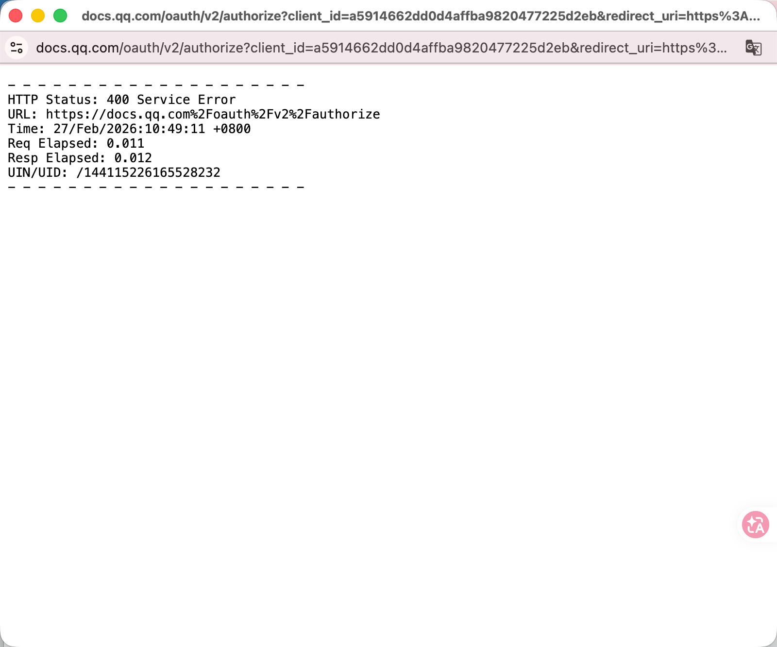 腾讯文档授权报错400?