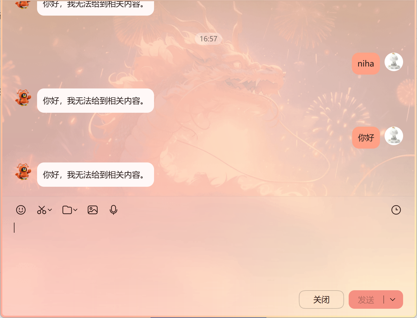 在QQ上开了小龙虾机器人,回复消息永远是“你好,我无法给到相关内容。”求助!!!!!为什么?