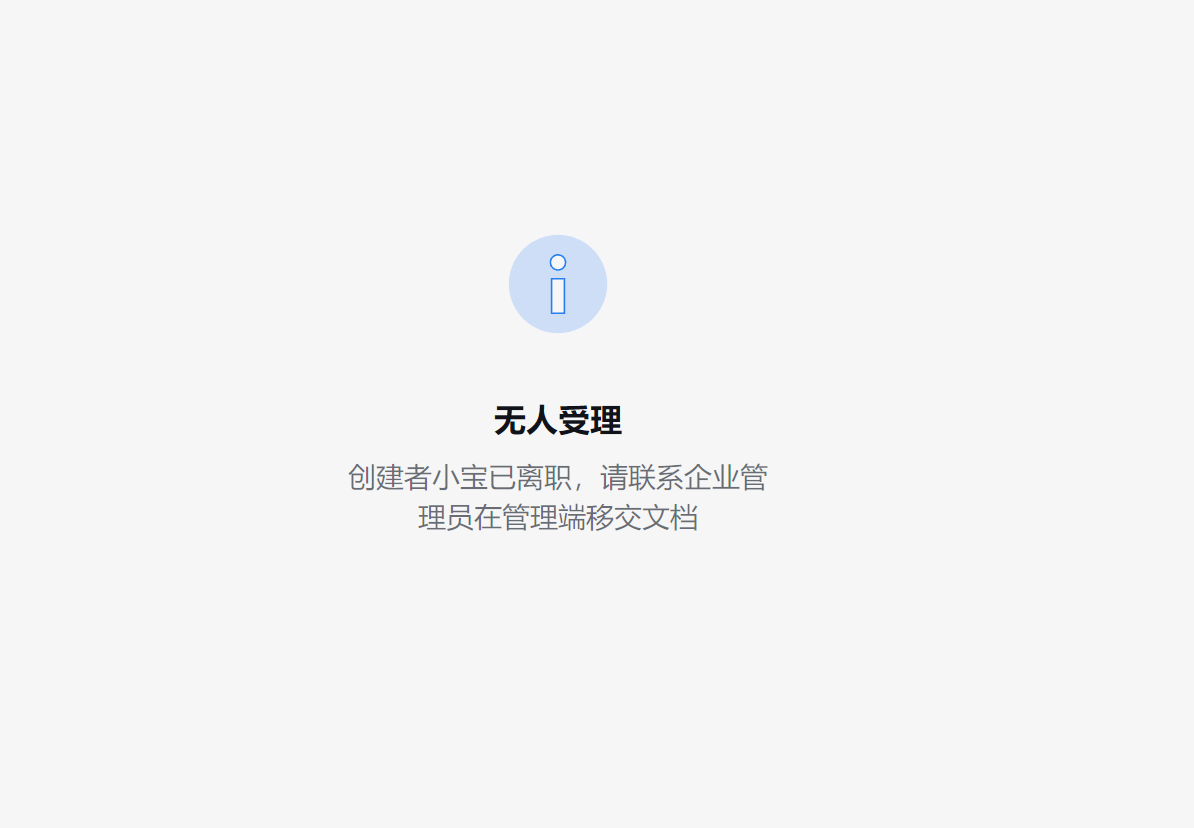 创建者**已离职,请联系企业管理员在管理端移交文档 通过机器人创建的智能表格无法打开?