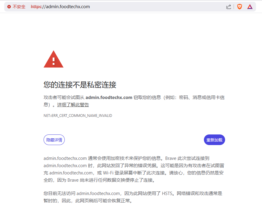 *.foodtechx.com这些子域名已经接入EO平台,但是admin.foodtechx.com打开后仍然提示无SSL证书