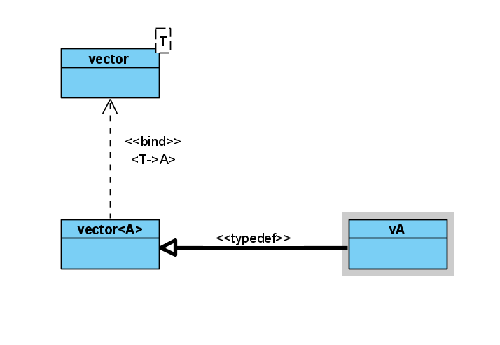 最接近的方法是使用专门化(继承)。如果vA是vector<A>的UML专门化,那么它将具有相同的(公共)属性和操作。