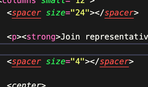 我正在使用基金会的电子邮件,其中有一些独特的标签名称,后来被分析。具体来说,VSCode似乎不喜欢<spacer>