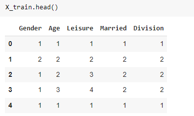 encoder1 = ce.OrdinalEncoder(cols=['Gender', 'Age', 'Leisure', 'Married', 'Division'])