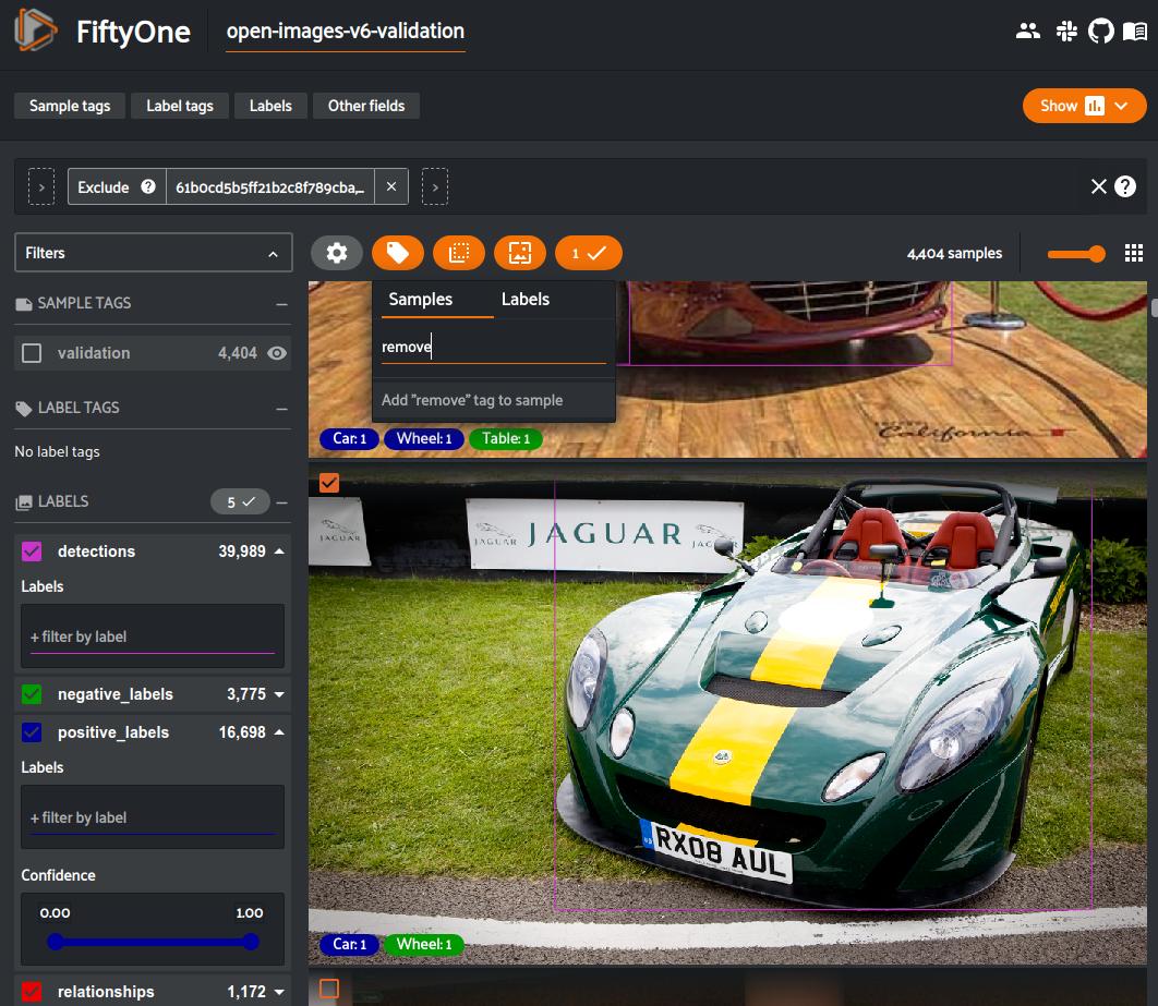 neg_view = dataset.filter_labels("negative_labels", F("label")==class_name)这是获取样本的最快方法,您可以确定是否有车牌。但是,在没有标注车牌的情况下,您将丢弃这些示例。