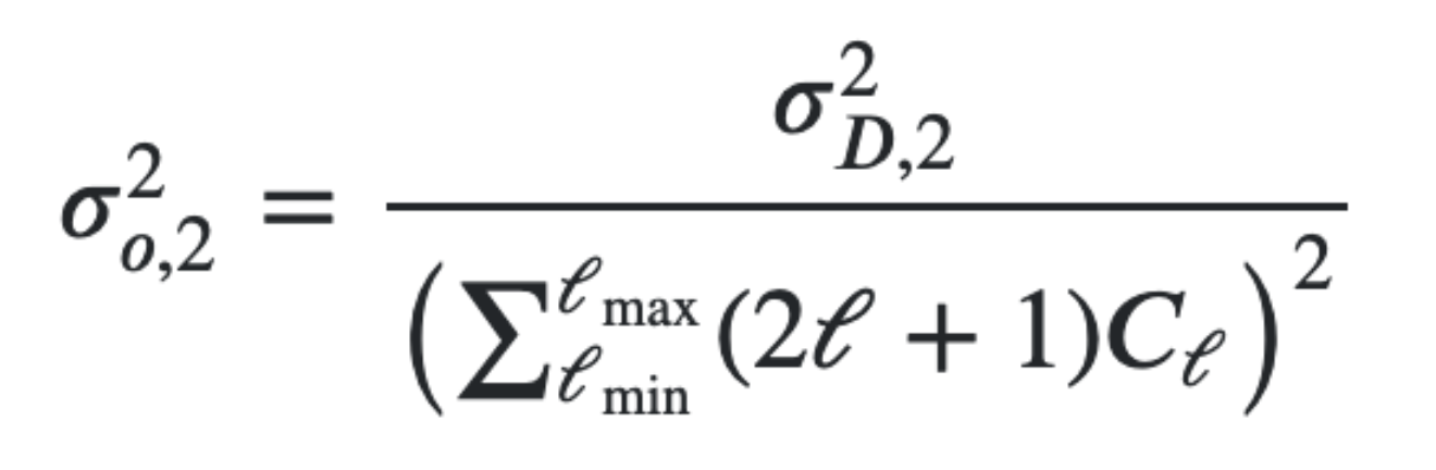 var2D = 2*symsum(((2*l+1)), l, l_min, l_max)./(fsky.*Np.^2)
