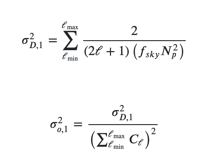var1D = symsum(2/((2*l+1)*fsky*Np^2), l, l_min, l_max)我不知道继续计算上面sigma_o,1^2的表达式。