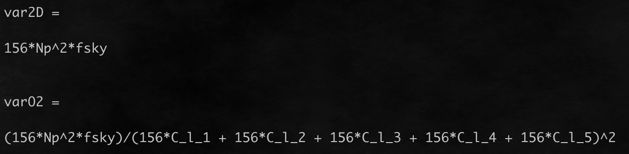 syms l_min l_max fsky Np var1D var2D varO1 varO2