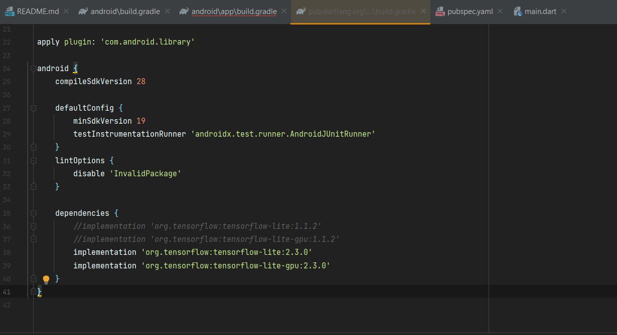 implementation 'org.tensorflow:tensorflow-lite:2.3.0'