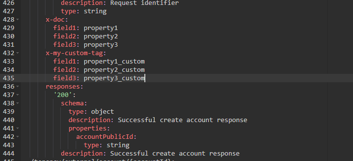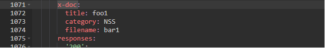 但是,在生成的JSON (swagger.json或swagger.yaml)中,我可以看到x-doc正在出现,而不是my-custom-tag。