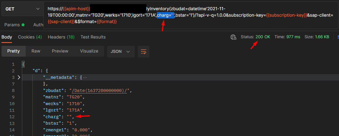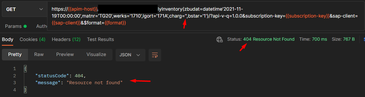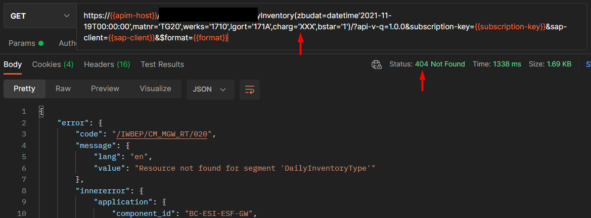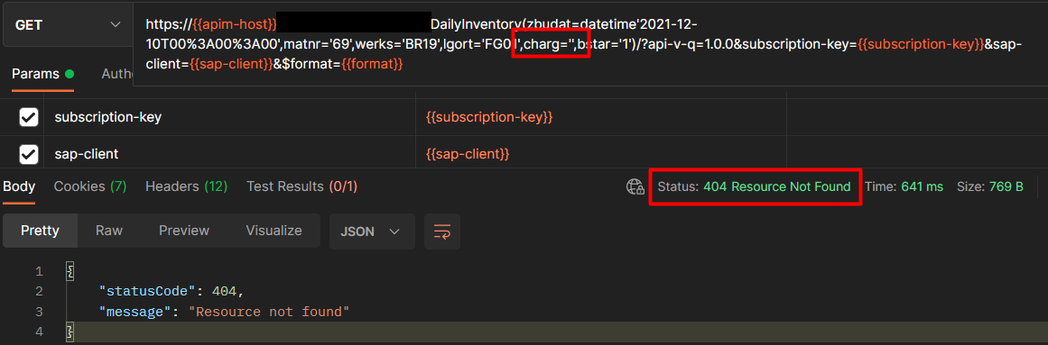 我们发现这可能是一个APIM映射问题,因为当我们在路径上设置一个空密钥(临时代办=‘’)时,我们收到一个404,甚至没有到达SAP网关: