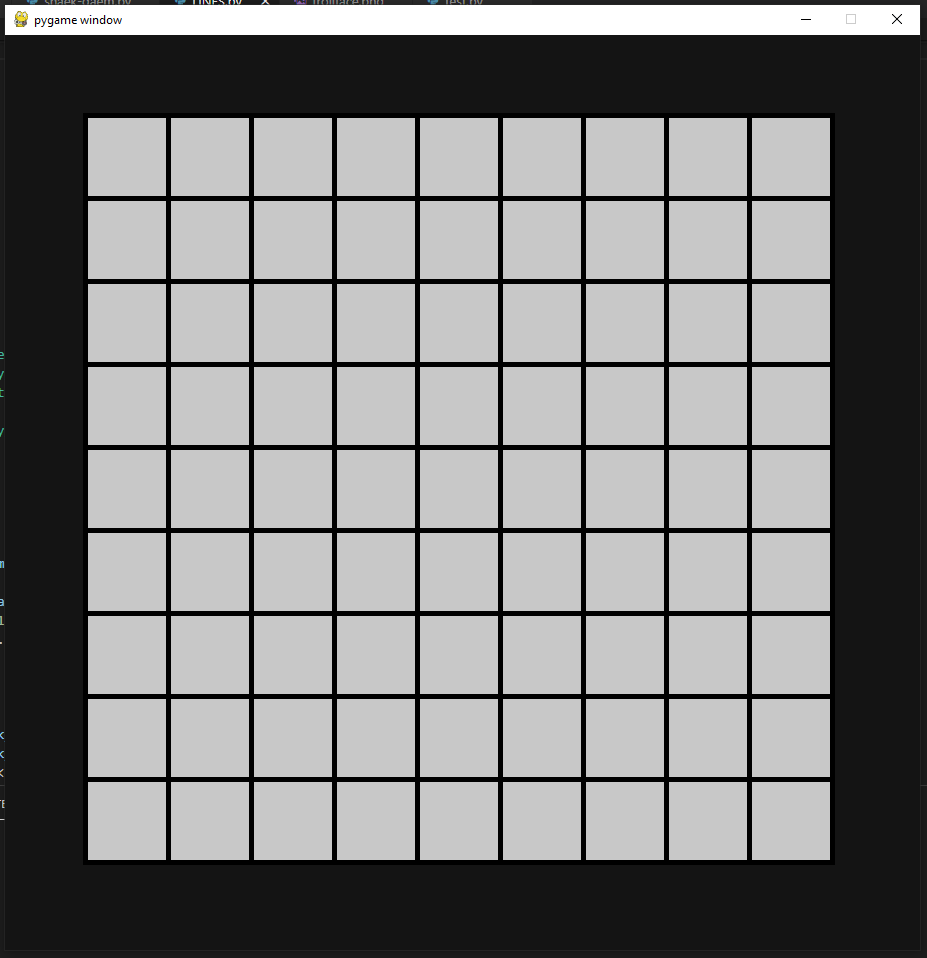 pygame.draw.rect(gameDisplay, black, [size-5,size-5,boardLength*size+5 ,boardLength*size+5])