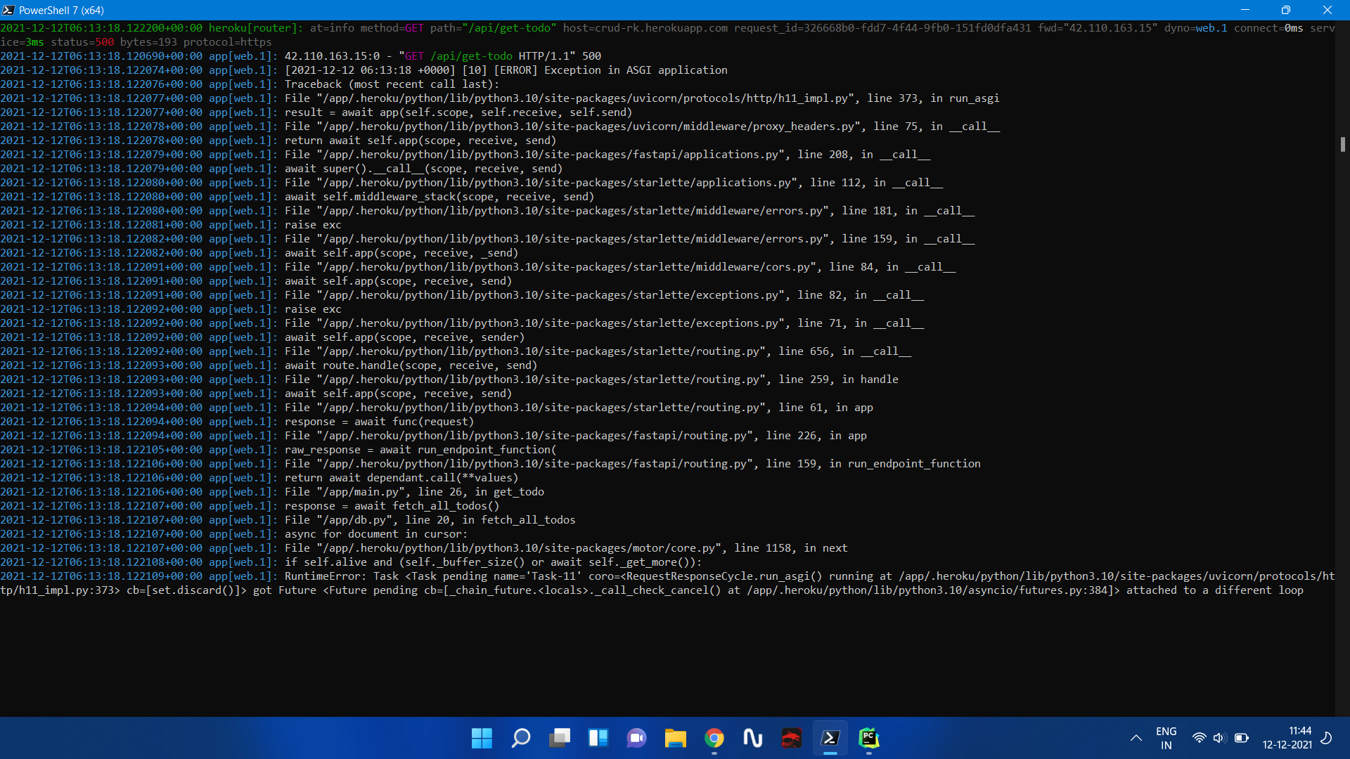 我想将database与我的mongodb数据库连接起来,当我在本地主机上运行我的后端时,它可以正常工作。但是当我在heroku上部署这段代码并尝试方法时,它返回“内部服务器错误”。我再次检查发现put、post和delete方法在某种程度上是有效的,我的意思是它在数据库上创建和更新数据,但同时给出内部服务器错误。所以我无法从数据库中读取数据,只能创建、更新和删除。