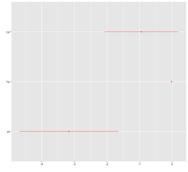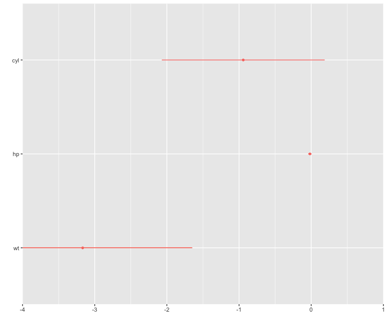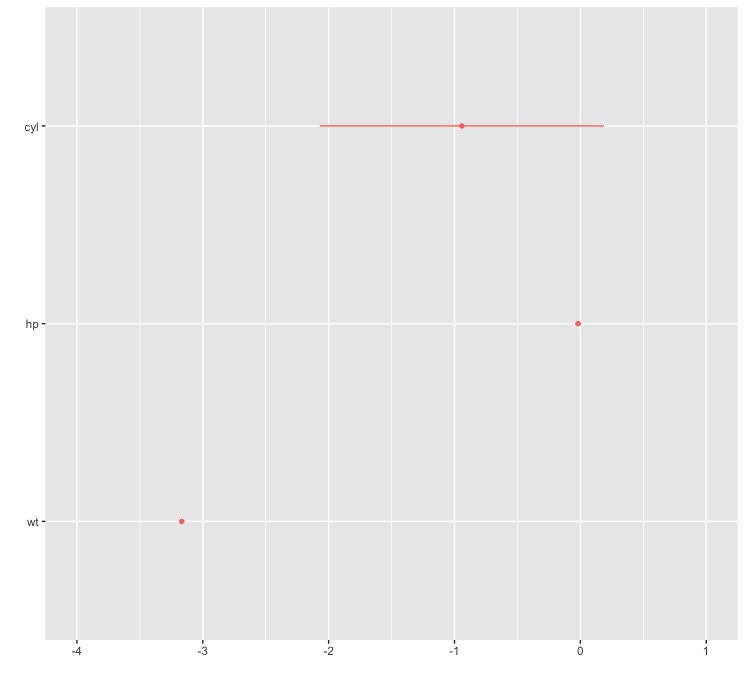 我试图使用R中的ggplot2和dotwhisker软件包来显示来自模型的系数估计。我的一个协变量有很宽的置信区间,所以x轴的尺度很大。当我设定x轴的限制比顺式窄时,CI条就会从图中消失。有什么办法可以保留顺铂,即使它们会被砍掉呢?