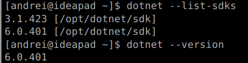 我还试着安装了snap。但这也不起作用。在给它别名dotnet之后(就像安装页面中告诉它的那样),我得到了以下信息:/snap/dotnet-sdk/79/snap/command-chain/snapcraft-runner: 3: exec: /snap/dotnet-sdk/79/dotnet: not found