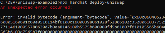 npx hardhat deploy-uniswap会导致一个令人讨厌的错误,错误中充斥着字节码和一些其他细节: