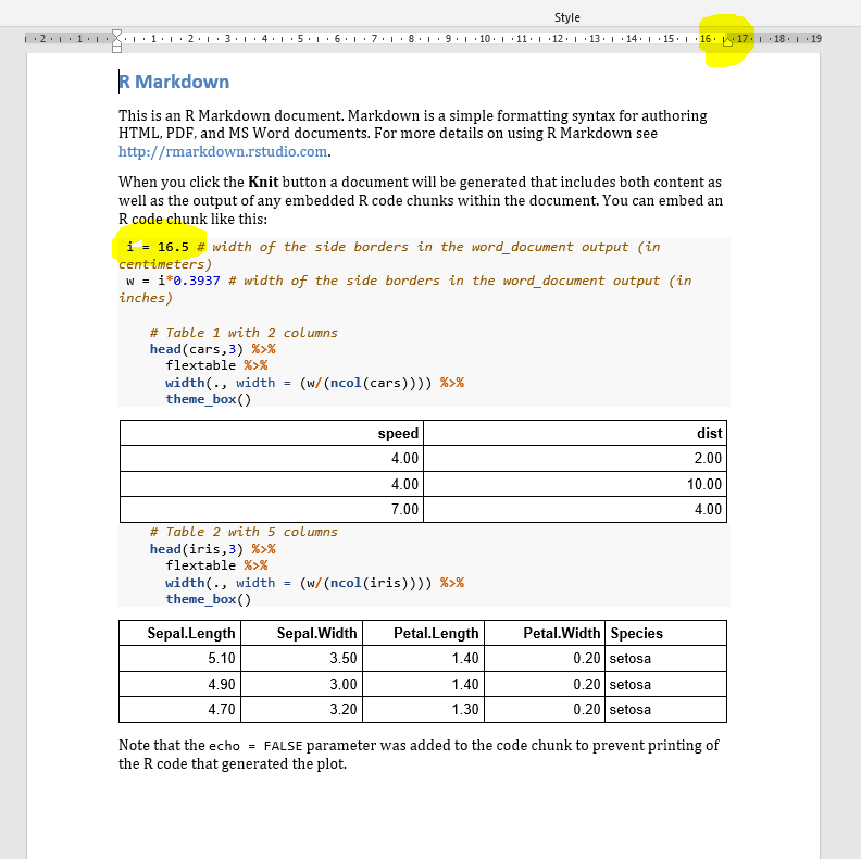 ```{r cars}I= word_document输出中边框的16.5 #宽度(厘米)
